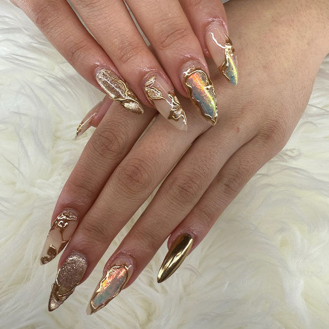 Nail Buffet: Choose from hundreds of regularly updated colors and customizable designs, including French, ombre, and more. We offer various lengths and shapes to suit your style.